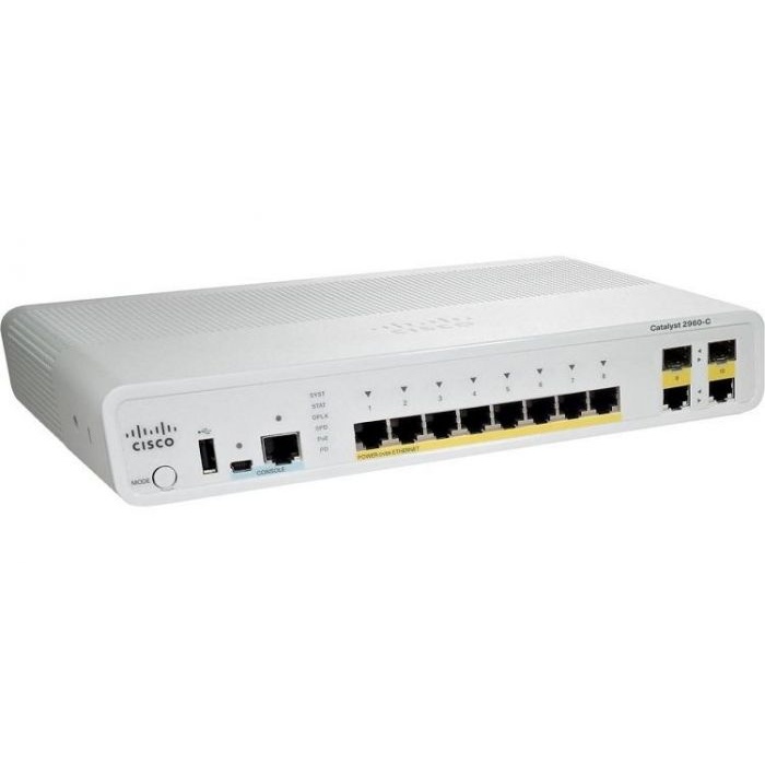 Коммутаторы Cisco Catalyst 2960-C - семейство коммутаторов второго уровня с фиксированной конфигурацией, которое позволяет подключать рабочие станции к сетям Fast Ethernet и Gigabit Ethernet на скорости среды передачи, удовлетворяя растущие потребности в пропускной способности на периферии сети. Для агрегации применяются комбинированные гигабитные uplink-порты, которые могут объединяться в единый канал по технологии GigabitEtherChannel. Коммутаторы Catalyst 2960-C - это компактные устройства версии устройств Cisco Catalyst 2960-S, представлены в белом корпусе, они обладают той же функциональностью, ОС и имеют те же возможности управления, но их размеры гораздо меньше, чем у 2960-S серии.