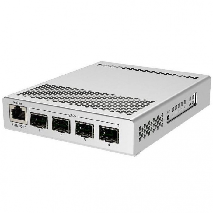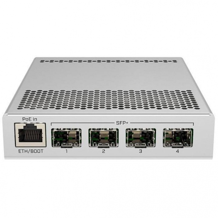 Компактный, но мощный, коммутатор, обладающий четырьмя портами SFP+ для соединяемости 10 Гбит/с по порту, одним гигабитным портом Еthernet и двумя разъёмами питания постоянным током для резервирования. Изделие заключено в очень компактный и обтекаемый металлический корпус без каких-либо вентиляторов, что обеспечивает бесшумное функционирование.