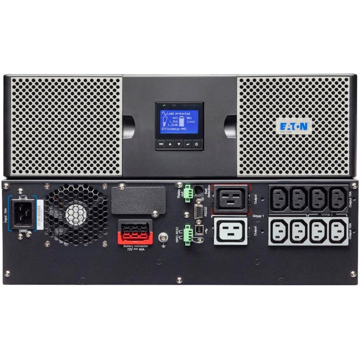 Источник бесперебойного питания Eaton 9PX 2200i RT3U 9103-73789 - подходящий для использования с серверами, сетевым оборудованием и кассовыми терминалами. ИБП поддерживает подключение внешних батарейных блоков для увеличения времени автономной работы. Для замены основной батареи нужно выключить ИБП. Модель оснащена LCD экраном. Подключение к компьютеру осуществляется через интерфейсы USB и RS-232. Возможно расширить управление ИБП специальным модулем. Копус ИБП универсален, его можно установить в стойку или поставить на пол. В шкафу он займет 3U. КПД до 98% позволяет снизить затраты на охлаждение и электроэнергию многоязычный ЖК-дисплей. измерение потребления электроэнергии на уровне розеточных групп ПО Intelligent Power® Software совместим со всеми основными ОС, включая виртуальные среды.