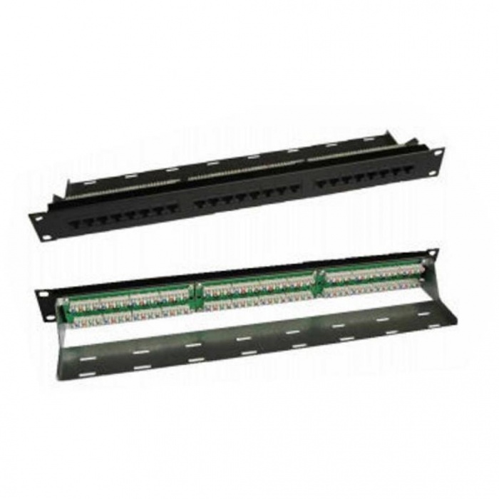 19-дюймовая коммутационная панель 50 x RJ45 предназначена для подключения неэкранированных магистральных многопарных кабелей (25 и 50 пар), а также 4-парных горизонтальных кабелей.