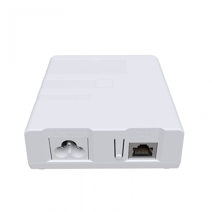 Компактное (94 x 105 x 32 мм) PowerLine устройство oснащено одним Gigabit Ethernet портом с поддержкой питания PoE out Passive 24 V.