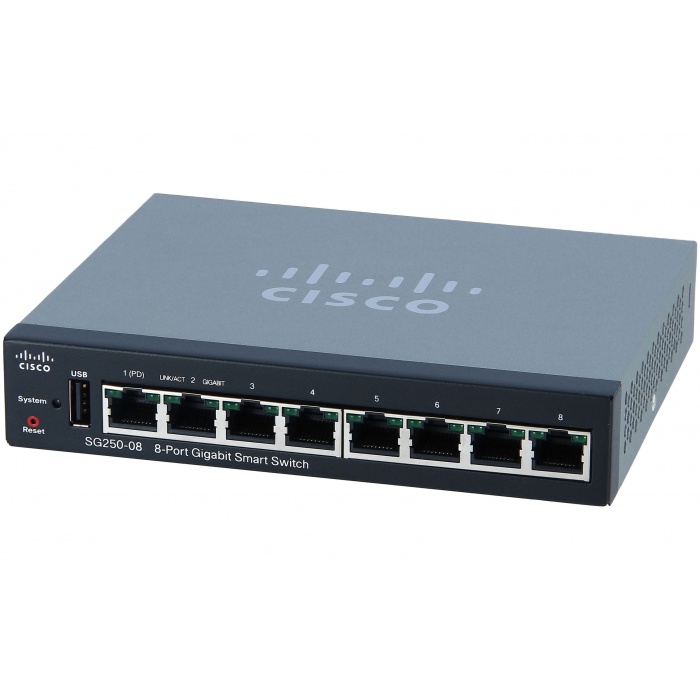 Коммутатор Cisco SG250-08 8-Port Gigabit Smart Switch (SG250-08-K9-EU)