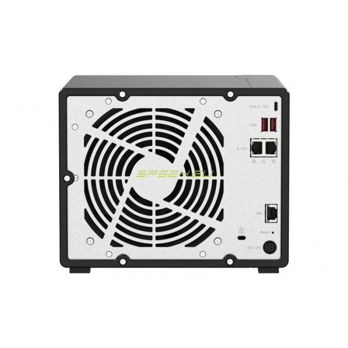 Оснащен четырех ядерным процессором AMD Ryzen V1000 серии V1500B с тактовой частотой 2,2 ГГц, двумя портами 2,5 Гбит/c и портом 10 Гбит/c RJ-45, которые вместе обеспечивают высокую скорость сетевых подключений, комфортную работу приложений с интенсивным вводом-выводом данных и производительность запускаемых виртуальных машин. Гибридная корзина включает пять отсеков для 3,5-дюймовых дисков SATA 6 Гбит/с, два слота для 2,5-дюймовых твердотельных накопителей U.2 NVMe (поддерживают твердотельные накопители U.2 NVMe и SATA) и два слота для 2,5-дюймовых твердотельных накопителей SATA 6 Гбит/с. Операционная система QuTS hero на основе ZFS отвечает за целостность данных, поддерживает встроенную дедупликацию и сжатие данных на уровне блоков, а также практически безграничные моментальные снимки.