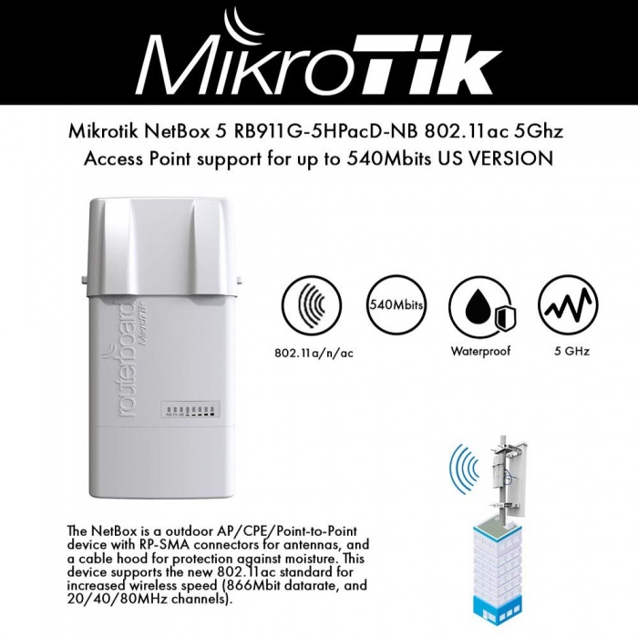 Точка доступа стала одной из первых наружных точек доступа именно операторского класса, с которой производитель Mikrotik вступил в новую эру беспроводной связи по стандарту IEEE802.11ac. Тем более, что с ней скорость передачи данных легко достигает показателя в 540 Mbit/s.