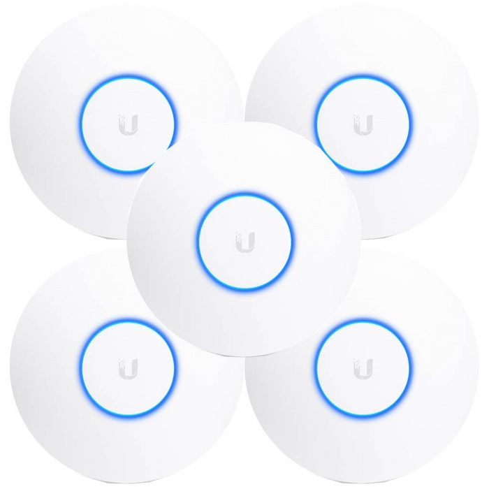 Комплект беспроводных точек доступа Ubiquiti UniFi AC HD 5 (UAP-AC-HD-5) состоит из пяти устройств UAP-AC-HD и позволяет реализовать все преимущества сочетания высокой производительности беспроводной сети, возможности неограниченного масштабирования и мощного центрального контроллера управления. Комплект предназначен для работы в частотных диапазонах 2,4 ГГц и 5 ГГц одновременно, поддерживает стандарт связи 802.11ac Wave 2 MU-MIMO, обеспечивающий одновременное соединение в пределах одного канала нескольких абонентов и технологию Beamforming, которая с помощью сдвига частоты сигнала способствует увеличению производительности оборудования. Каждая точка доступа UAP-AC-HD может обеспечить одновременно до 500 подключений на расстоянии до 180 метров – соответственно комплект позволяет развернуть беспроводную сеть в здании, на стадионе или в концертном зале, других больших по площади местах, где наблюдается большая концентрация пользователей сети Wi-Fi. Фирменное программное обеспечение UniFi позволяет управлять сетью с помощью локального персонального компьютера, Mac или Linux; облачных технологий, приватных или общего доступа. Предустановленная операционная система дает возможность развернуть облачный ключ UniFi. Точка доступа UniFi HD AP способна решать задачи, требующие значительных вычислительных ресурсов (контроль трафика, ранжирование абонентов. хотспот и т.п.) без снижения пропускной способности.
