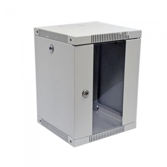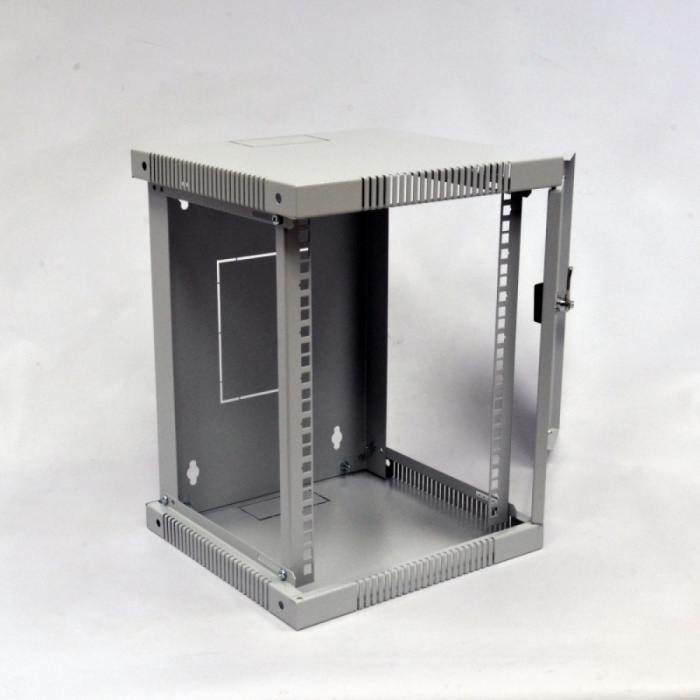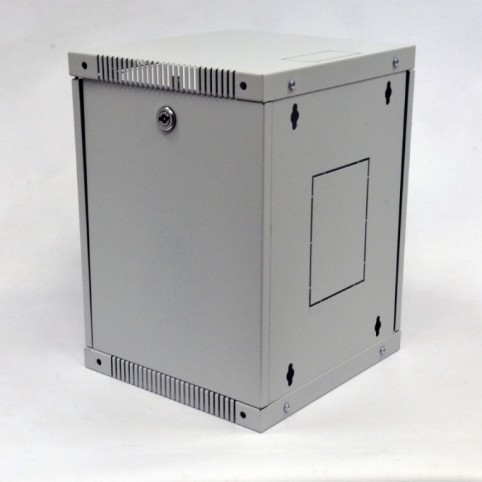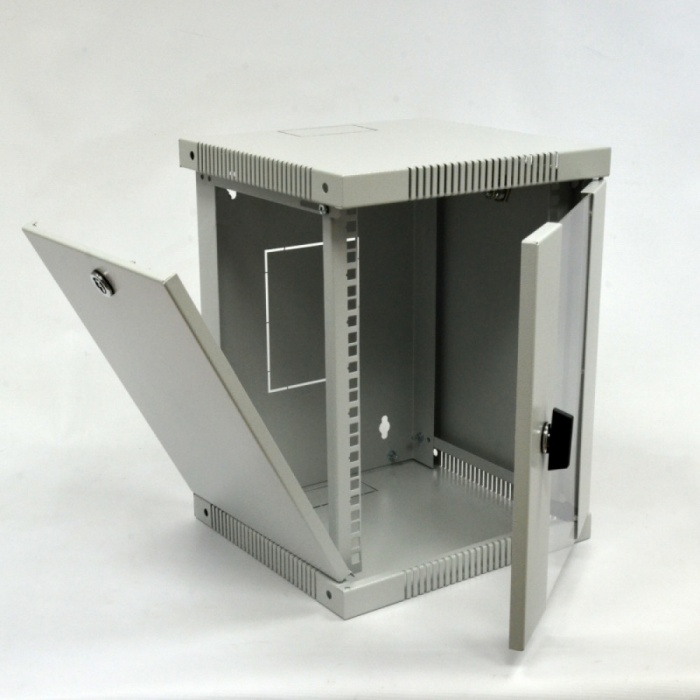 Коммутационный шкаф 12U формата 10 дюймов (25,4 см) предназначен для организации небольших сетевых узлов коммутации. Линейка шкафов представлена в трех основных величинах: 6U, 8U и 12U. Данный тип шкафов подходит для установки в квартире, доме, офисе и размещении внутри роутера, коммутатора, ИБП и патч-панели с витой парой от розеток. Для шкафов 10" представлен полный спектр дополнительных комплектующих: патч-панели, полки, блоки розеток 220В, кабельные органайзеры. Завести кабель в шкаф можно сверху, снизу и через заднюю стенку, что позволяет проложить кабель скрытым монтажом или в пластиковом кабель-канале. Отверстия кабельного ввода высечены в металле и демонтируются с помощью незначительного усилия. Для охлаждения активного сетевого оборудования предусмотрены перфорированные отверстия в верхней и нижней панелях шкафа, установить вентиляторы нет возможности.
