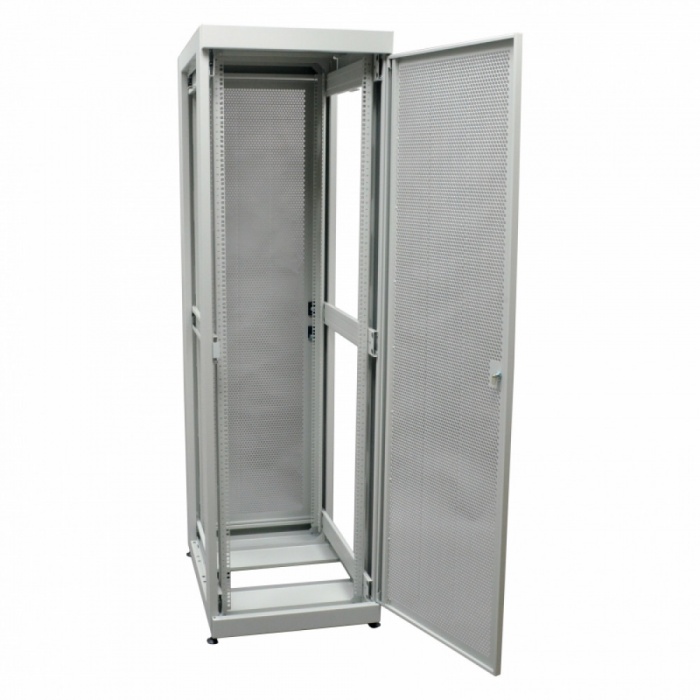 Серверный шкаф 19" 42U серии MGSE с цельнометаллическими дверьми с перфорацией предназначена для организации коммутационного узла в помещениях серверной и ЦОД с внешним охлаждением. Благодаря двум парам направляющих с лицевой и задней стороны и допустимой нагрузке в 500 кг, в шкафах на четыре точки крепления размещают оборудование, такое как серверы, блок бесперебойного питания повышенной ёмкости и полки глубиной более 450 мм. Двусторонняя конструкция позволяет как устанавливать оборудование с двух сторон, увеличивая высоту в юнитах в два раза, так и масштабировать сеть в будущем, например, в настенный шкаф на 18U можно установить только 18 патч-панелей, в напольный шкаф 18U устанавливается уже 36 панелей.