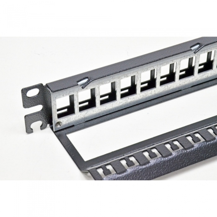 • возможность заземлить патч-панель благодаря изготовленной из оцинкованной стали крепежной планки под модули RJ-45;