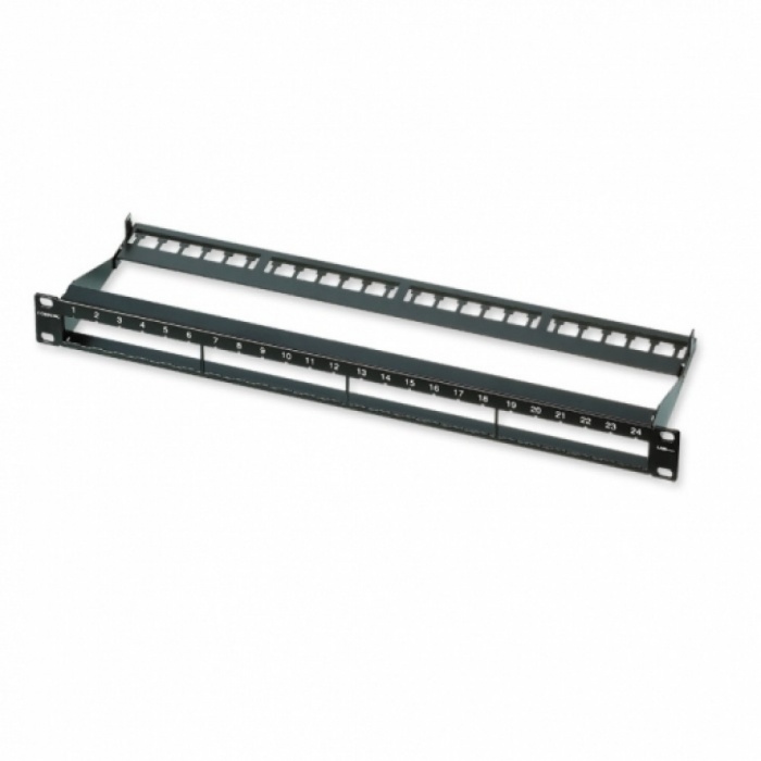 Модульная патч-панель 1U на 24 порта LANscape – одна из составных частей структурированной кабельной системы (СКС), предназначена для расключения витой пари со стороны точки коммутации, например в серверном шкафу или коммутационной стойке. Патч-панель изготовлена из стали, покрашена порошковой краской и рассчитана на подключения заземления. Конструкция предусматривает кабельный органайзер для фиксации 24 кабелей витой пары пластиковыми стяжками. Для неиспользуемых портов под модули предусмотрены пластиковые заглушки с креплением формата LANscape серии FutureCom (опционально). Патч-панель предназначена для установки модулей S250 и S500, дополнительно есть возможность установить адаптер под модули KeyStone с креплением LANscape.