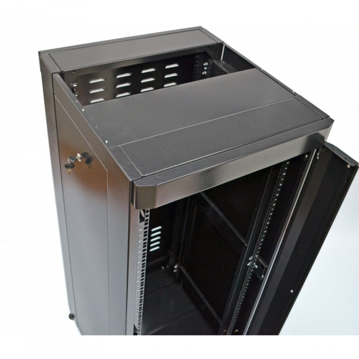 Серверный шкаф 19" 18U серии MGSE с передними дверями из каленого стекла и задней глухой дверцей предназначен для организации коммутационного узла в офисных и серверных помещениях. Благодаря двум парам направляющих с лицевой и задней стороны и допустимой нагрузке в 500 кг, в шкафах на четыре точки крепления размещают оборудование, такое как серверы, блок бесперебойного питания повышенной ёмкости и полки глубиной более 450 мм. Двусторонняя конструкция позволяет как устанавливать оборудование с двух сторон, увеличивая высоту в юнитах в два раза, так и масштабировать сеть в будущем, например, в настенный шкаф на 18U можно установить только 18 патч-панелей, в напольный шкаф 18U устанавливается уже 36 панелей.