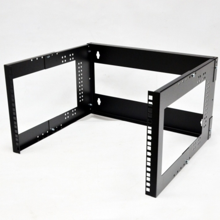 Открытая конструкция – это одновременно плюс и минус этого изделия. Отсутствие стенок позволяет охлаждать активное оборудование естественным путем или с применением внешнего кондиционирования. Конструкция легко масштабируется по высоте путем установки второго кронштейна выше или ниже. В отличии от шкафов, в результате установки второго кронштейна мы получаем практически бесшовное соединение между 19 дюймовыми направляющими. Минусом можно назвать прямой доступ к оборудованию посторонних лиц, из-за чего нужно серьезно подходит к выбору места установки.