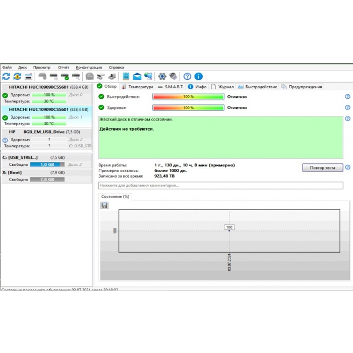HGST Ultrastar C10K900 — надёжный высокопроизводительный жёсткий диск серии Ultrastar, обеспечивающий быстрый доступ к данным и длительную работу. Благодаря объёму в 900 ГБ, высокой скорости вращения 10000 RPM и интерфейсу SAS 6.0 Gbps, этот диск станет отличным выбором для серверов и дата-центров. Диск был в эксплуатации непродолжительное время с умеренной нагрузкой, что свидетельствует о его стабильной работе и долговечности, обеспечивая надёжное и эффективное использование.