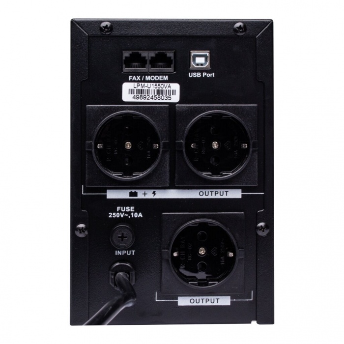 ИБП/UPS LPM-U1550VA применяется для стабилизации напряжения в сети питания электрическим током бытовой, офисной или промышленной техники.