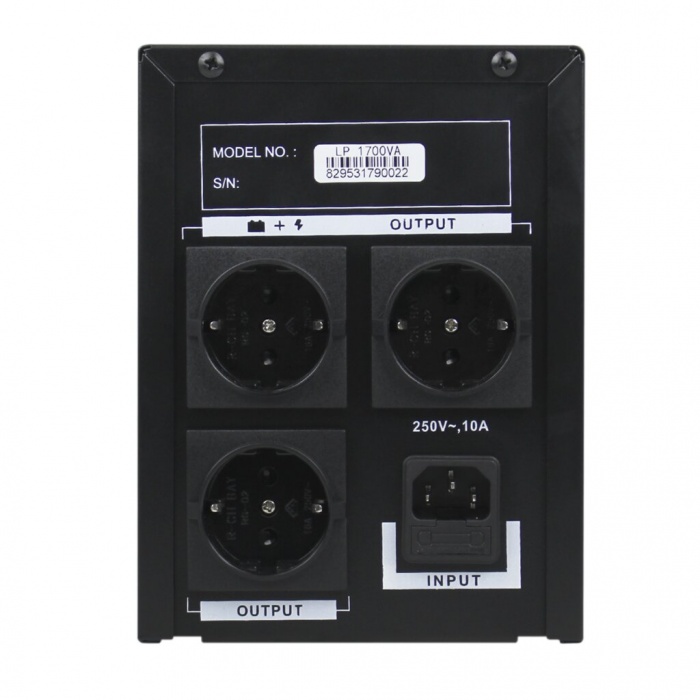ИБП LogicPower LP-1700VA-P позволяет одновременно подключать четыре устройства общей мощностью до 1700/1020 ВА/Вт.
