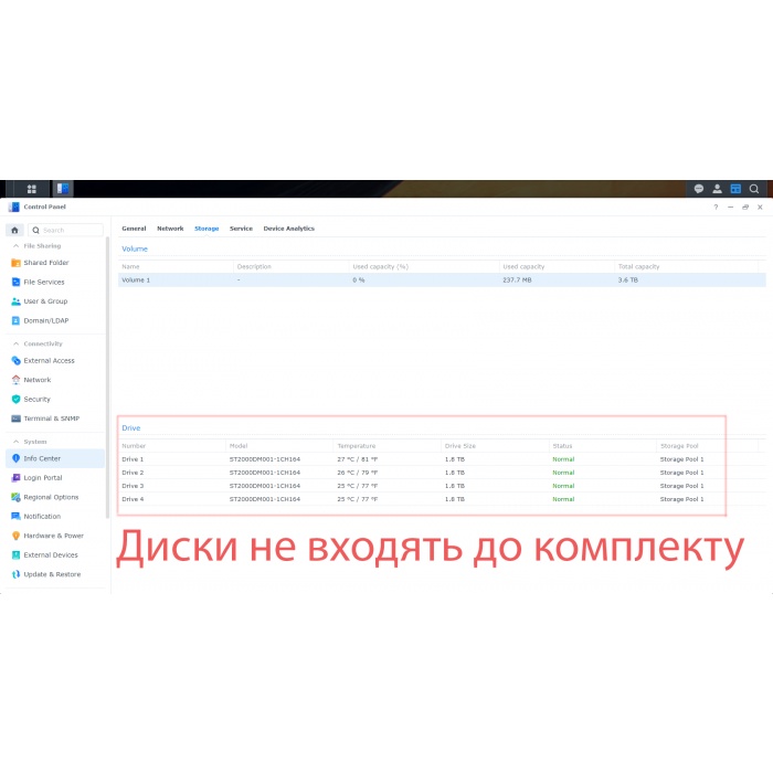 - Увеличение объема хранения с модулем Synology RX415