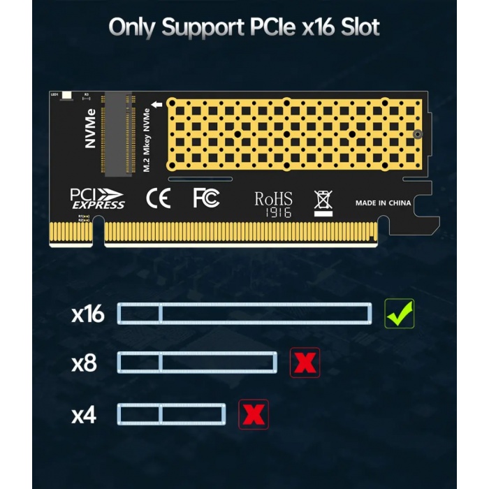 1. This M.2 NVME to PCIe 4.0 x16 Adapter Only fit for PCIe M.2 NVME based M Key& B+M Key SSD. Do not support SATA based SSD!