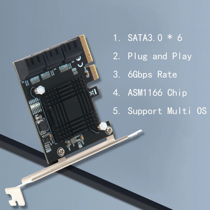Контроллер HDD 6 Port SATA 3 PCI Express Expansion Card PCI-E/PCIE SATA Controller SATA Multiplier SATA3 6Gbps ASMedia ASM1166 Chip for HDD SSD