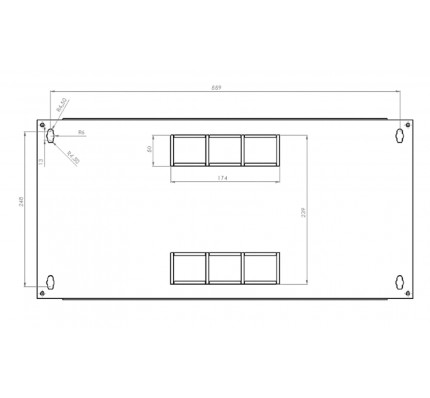 Отверстия для крепления шкафа расположены на задней части несущего элемента каркаса и имеют диаметр от 9 до 12 мм;