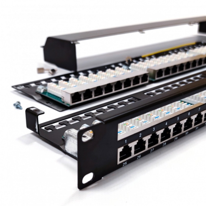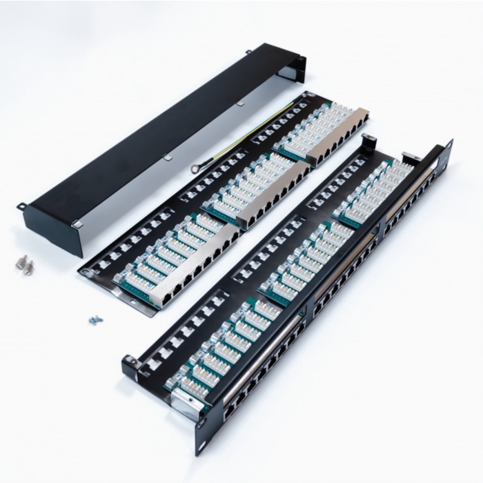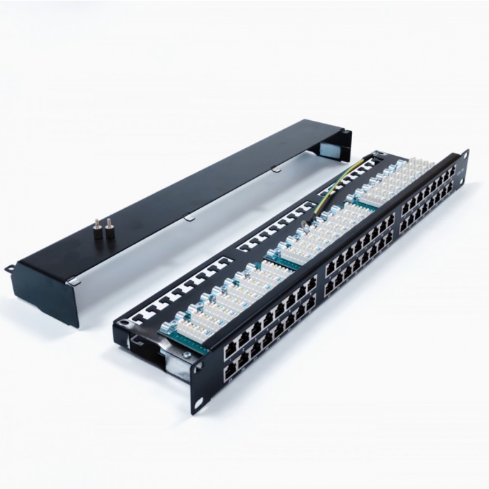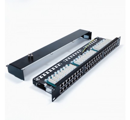 Панель выполнена в стандарте 19" и занимает всего 1U пространства, что делает её универсальным решением для различных сетевых конфигураций. Удобная конструкция с возможностью подключения 48 портов RJ-45 позволяет минимизировать время на монтаж и обслуживание, а также обеспечивает легкий доступ к каждому порту.
