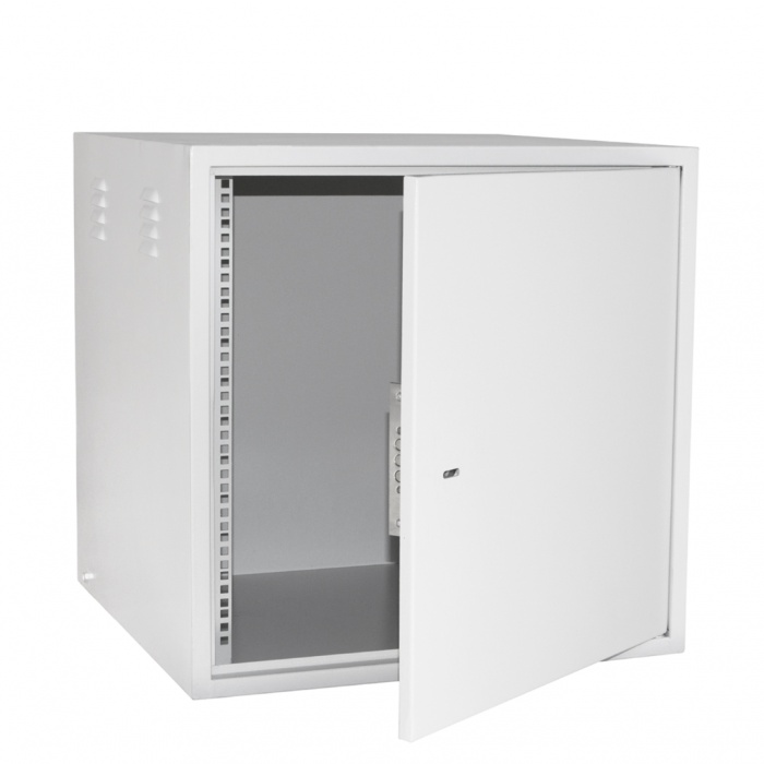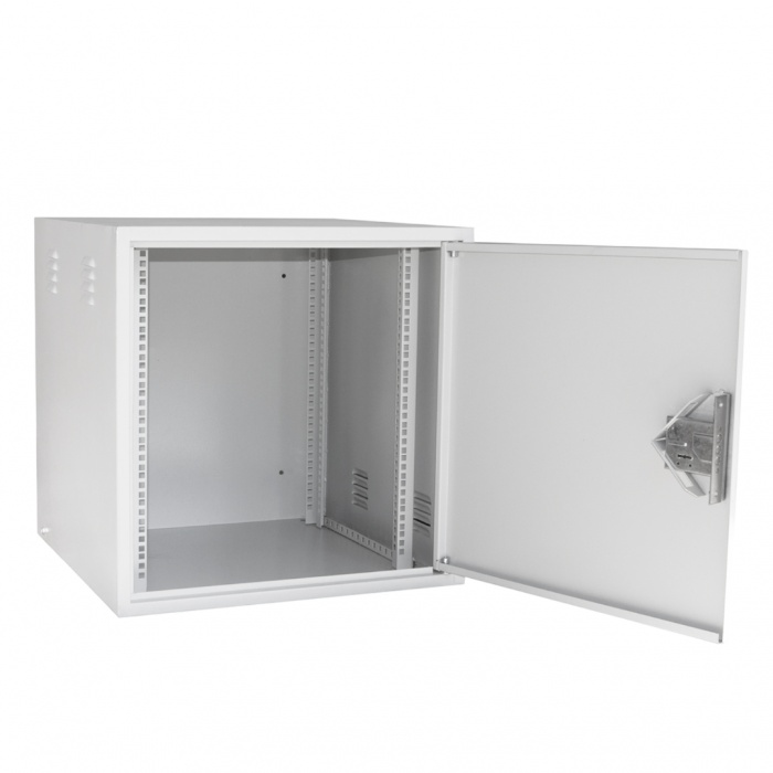 Комплектація: 12U, двері з загартованого скла, знімні бокові панелі, замок на дверях, вентиляційні отвори.
