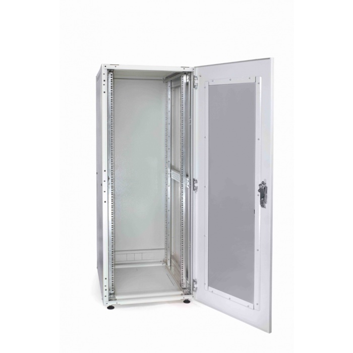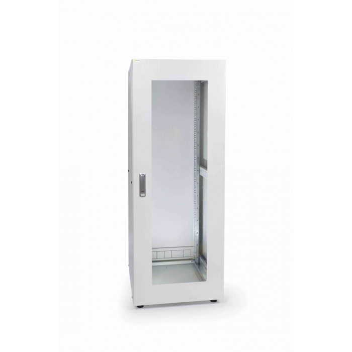 Шкаф изготовлен из высококачественной стали и покрыт порошковой краской цвета RAL 7035, что обеспечивает долговечность и устойчивость к коррозии. Двери шкафа оснащены стеклянной вставкой, что позволяет визуально контролировать состояние оборудования, не открывая дверцу.