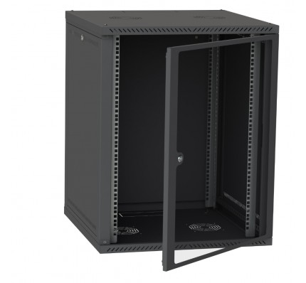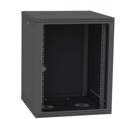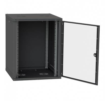 Этот шкаф выполнен в стильном черном цвете (RAL9005) и оснащен дверью из закаленного стекла, что придает ему современный и элегантный вид. Шкаф имеет универсальные размеры и подходит для большинства типов оборудования, обеспечивая легкий доступ для установки и обслуживания.