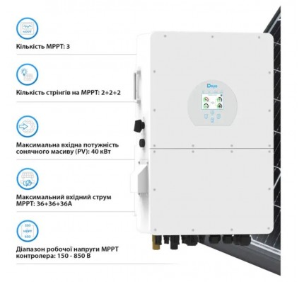 Солнечный инвертор Deye SUN-25K-SG02HP3-EU предлагает надежное и эффективное решение для преобразования солнечной энергии в электроэнергию. Это устройство идеально подходит для применения в крупных солнечных установках, обеспечивая стабильную и высокоэффективную работу. Благодаря современным технологиям и качественным компонентам, инвертор демонстрирует отличную производительность и долговечность.