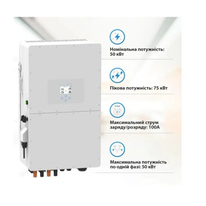 Солнечный инвертор Deye SUN-50K-SG01HP3-EU-BM4 – это высокоэффективное устройство, предназначенное для преобразования энергии, полученной от солнечных панелей, в электроэнергию, пригодную для использования в бытовых и промышленных целях. Благодаря передовым технологиям и встроенному WiFi модулю, инвертор обеспечивает надежное и стабильное энергоснабжение, а также возможность удаленного мониторинга.