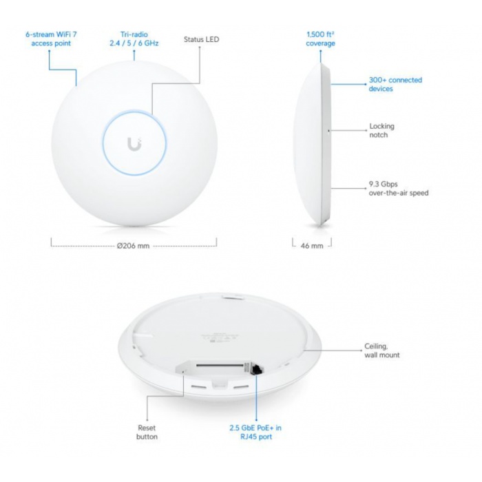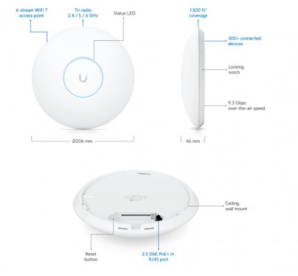 Ubiquiti UniFi 7 PRO оборудована передовыми технологиями, которые обеспечивают улучшенное покрытие и высокую скорость соединения, даже в условиях перегруженной сети. Это устройство поддерживает новейшие стандарты Wi-Fi и имеет интуитивно понятный интерфейс, который позволяет легко управлять настройками сети.
