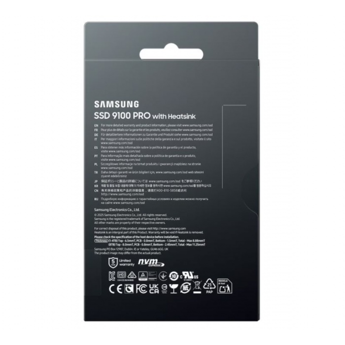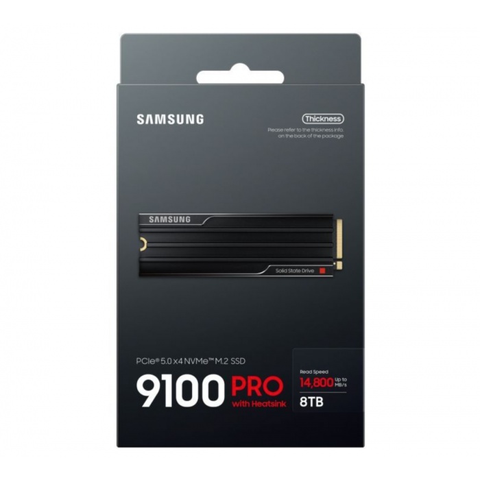Накопитель SSD Samsung 9100 PRO с интерфейсом PCIe 5.0 ×4 и форм-фактором M.2 2280 предлагает невероятную скорость и надежность для самых требовательных задач. Этот SSD объемом 8TB обеспечивает молниеносную передачу данных и стабильную работу благодаря встроенному радиатору, который эффективно отводит тепло, поддерживая оптимальную производительность.