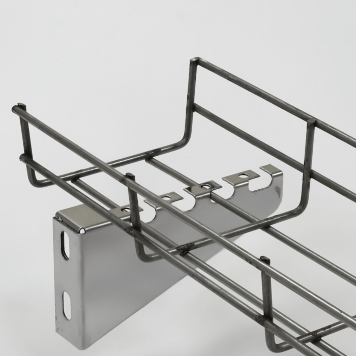 Кронштейн CMS предназначен для надежного и быстрого монтажа сетчатых лотков шириной 100 мм. Изготовленный из нержавеющей стали, он обеспечивает долговечность и устойчивость к коррозии, что делает его идеальным выбором для использования в различных условиях, включая влажные и агрессивные среды.
