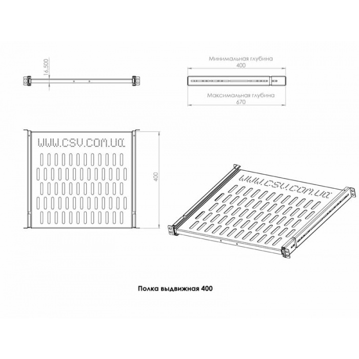 Выдвижная полка обрудована направляющими телескопического типа, которые получили неформальное название "салазки". Полка предназначается для легкого и малогабаритного оборудования, предоставляя удобный доступ. Изделие позволяет расположить оборудование с небольшим весом, ключевым преимуществом является наличие постоянного оперативного доступа.