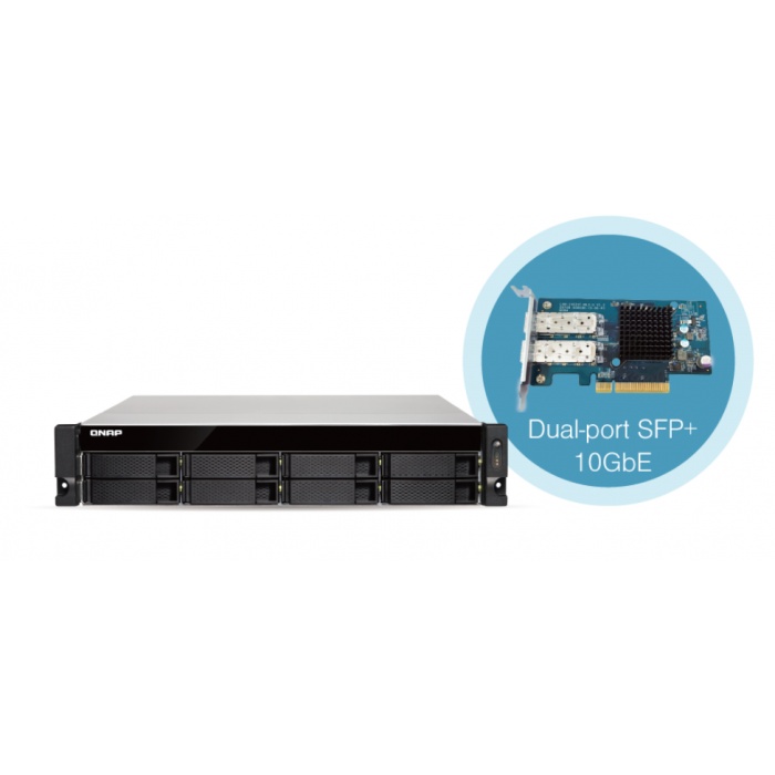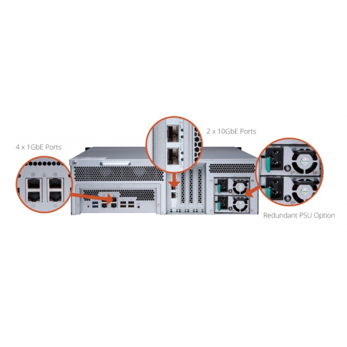Накопитель TS-1273U-RP поддерживает работу в высокоскоростной сетевой среде 10 Gigabit Ethernet и имеет встроенный двухпортовый 10GbE SFP+ PCI адаптер, гарантирующий впечатляющую производительность при работе, как с медными, так и с оптическими трансиверами. В сочетании с высокой емкостью хранилища накопитель TS-1273U-RP идеально подходит для центров обработки данных благодаря умению работать с большими объемами данных, задач виртуализации, а также для редактирования видеофайлов большого размера "на лету", не пересылая их между накопителем TS-1273U-RP и настольными компьютерами дважды.