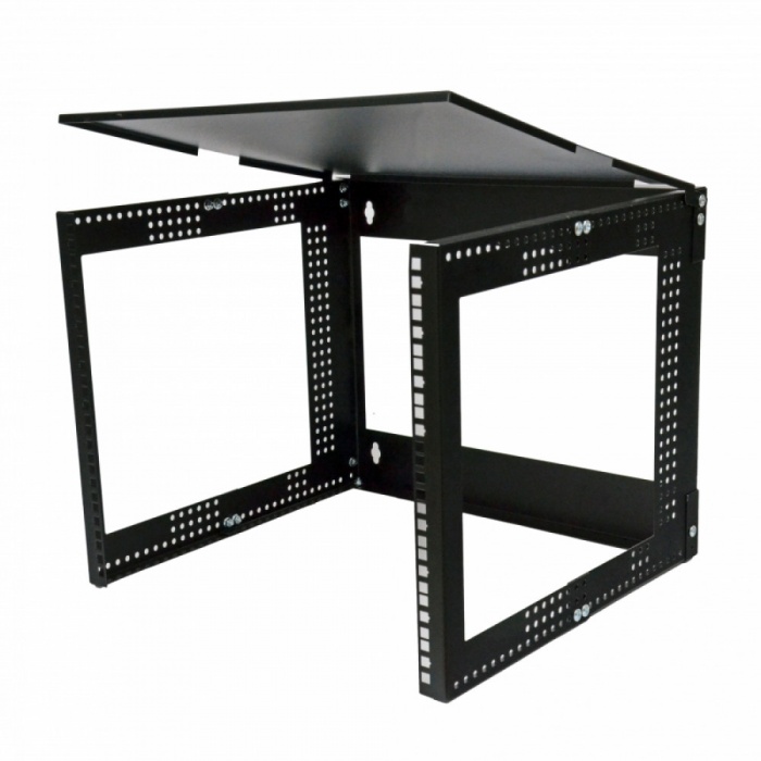 Відкрита конструкція – це одночасно плюс та мінус цього виробу. Відсутність стін дозволяє охолоджувати активне обладнання природним шляхом або із застосуванням зовнішнього кондиціювання. Конструкція легко масштабується за висотою шляхом встановлення другого кронштейна вище чи нижче. На відміну від шаф, в результаті встановлення другого кронштейна ми отримуємо практично безшовне з'єднання між 19-дюймовими напрямними. Мінусом можна назвати прямий доступ до обладнання сторонніх осіб, через що потрібно серйозно підходить до вибору місця встановлення.