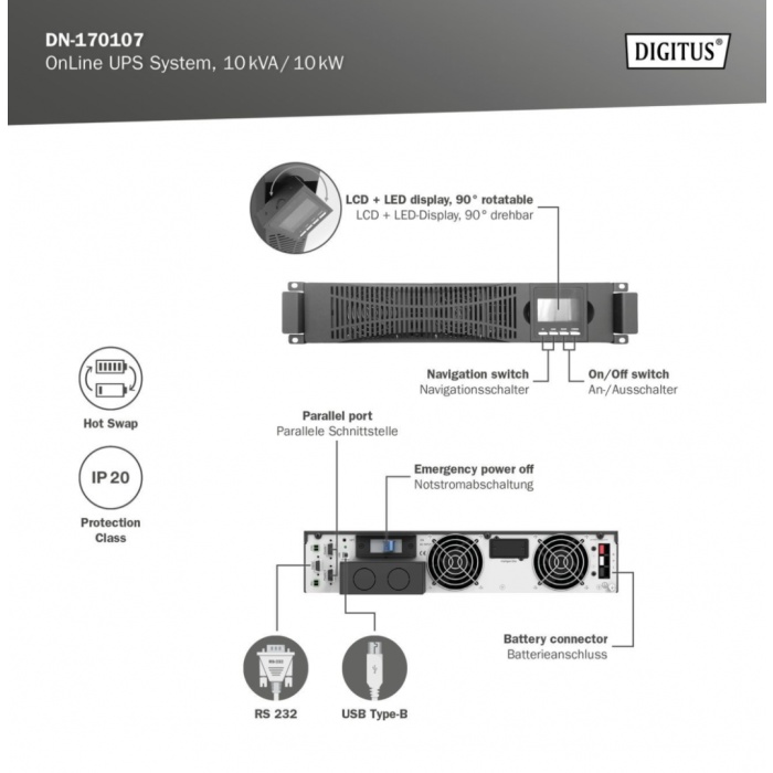 ДБЖ UPS ONLINE 10KVA/ 10KW DN-170107 ASSMANN