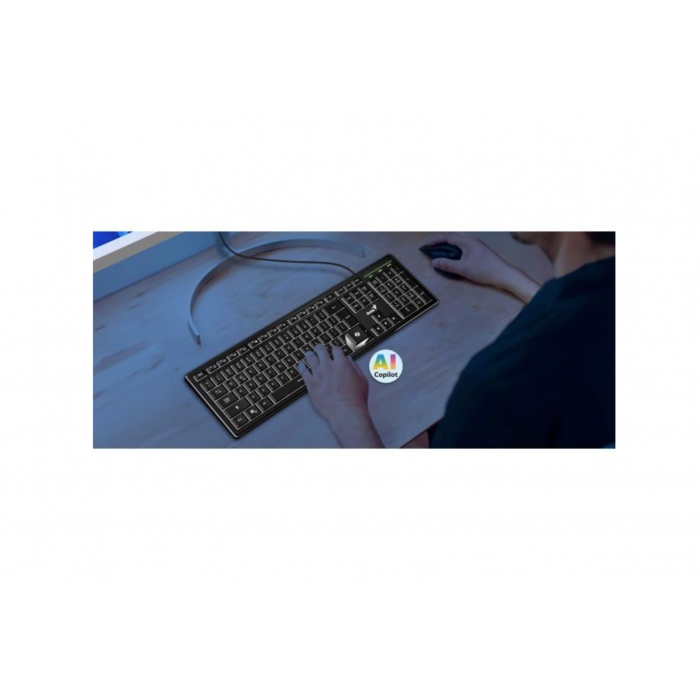Ця клавіатура має сучасний вигляд завдяки своєму тонкому корпусу та класичному чорному кольору. Вона оснащена тихими клавішами, що роблять набір тексту комфортним і безшумним. Універсальне підключення через USB забезпечує швидке та легке встановлення без необхідності додаткових налаштувань.