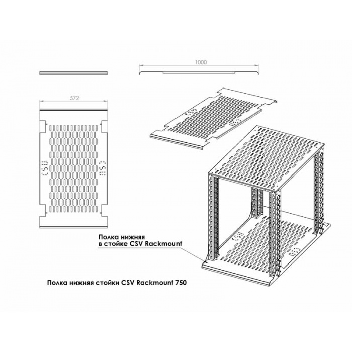 Полиця нижня 750-1000 мм. Для стійок серії Rackmount, глубиною 750